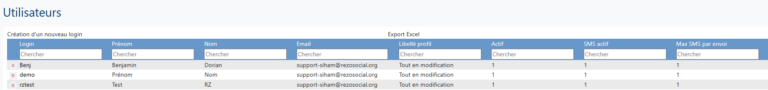 Pour rechercher dans le tableau des utilisateurs, un champ de recherche est disponible en haut à droite du tableau.