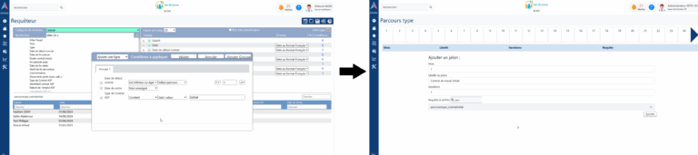 Une fois la requête prête, il faut procéder au paramétrage du jalon directement dans la fonctionnalité Parcours-type, accessible depuis les outils d’administration.