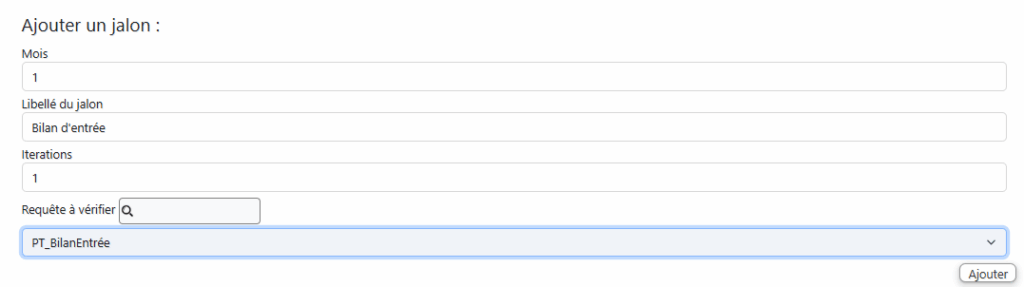 Mois = Nombre de mois après la date de début de parcours où le jalon sera contrôlé