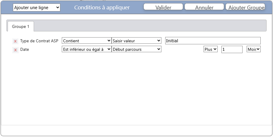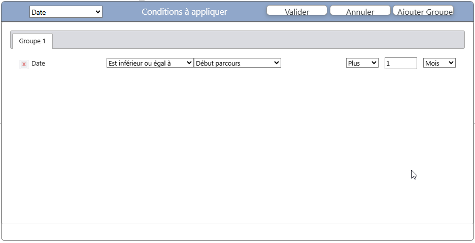 • Mois = 1 car la condition doit être satisfaite lors du premier mois après la date de début de parcours