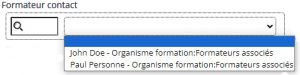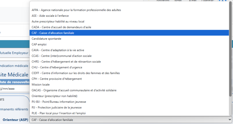 Liste déroulante issue de données liées : liste qui est alimentée à partir de la saisie de données d'une autre catégorie. Exemple : listes des partenaires ou des contacts partenaire, liste des permanents, etc. (varie selon les branches)