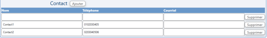 Pour ajouter une ligne, cliquer sur le bouton Ajouter en haut du tableau