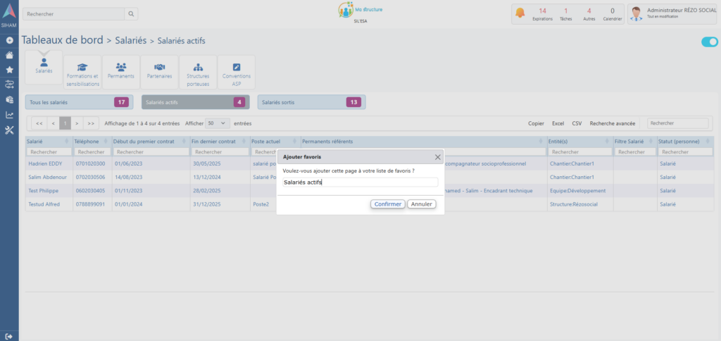 On peut par exemple choisir le tableau des salariés actifs, le tableau des sortis, etc.