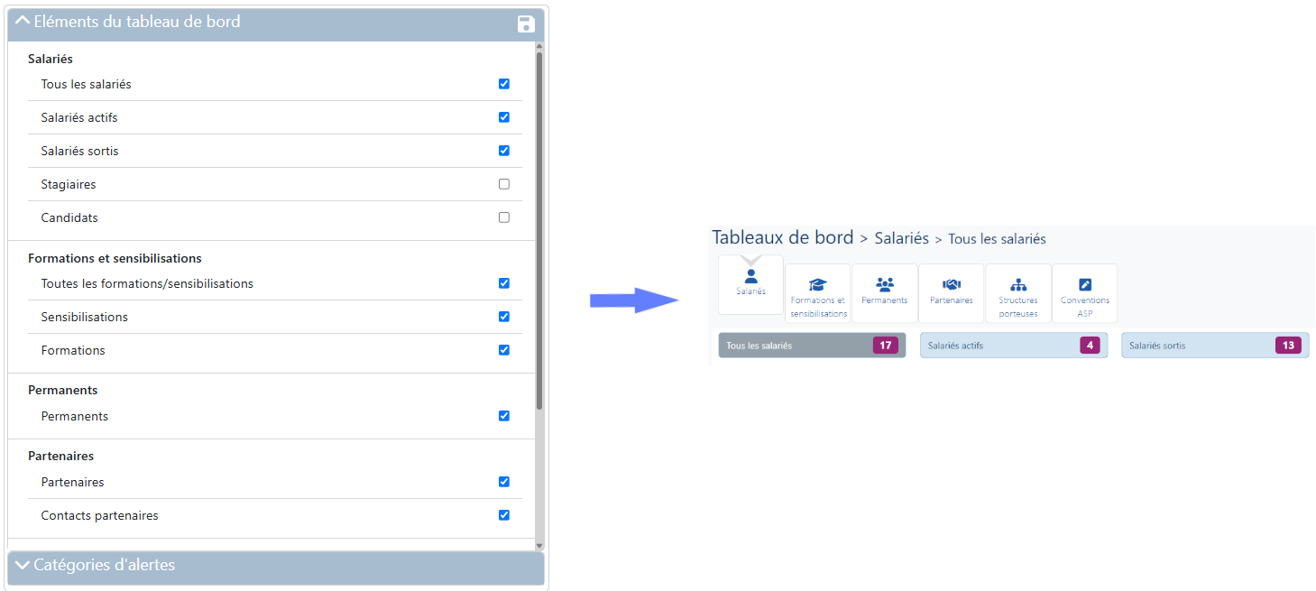 - Cocher les éléments des Tableaux de bord à masquer