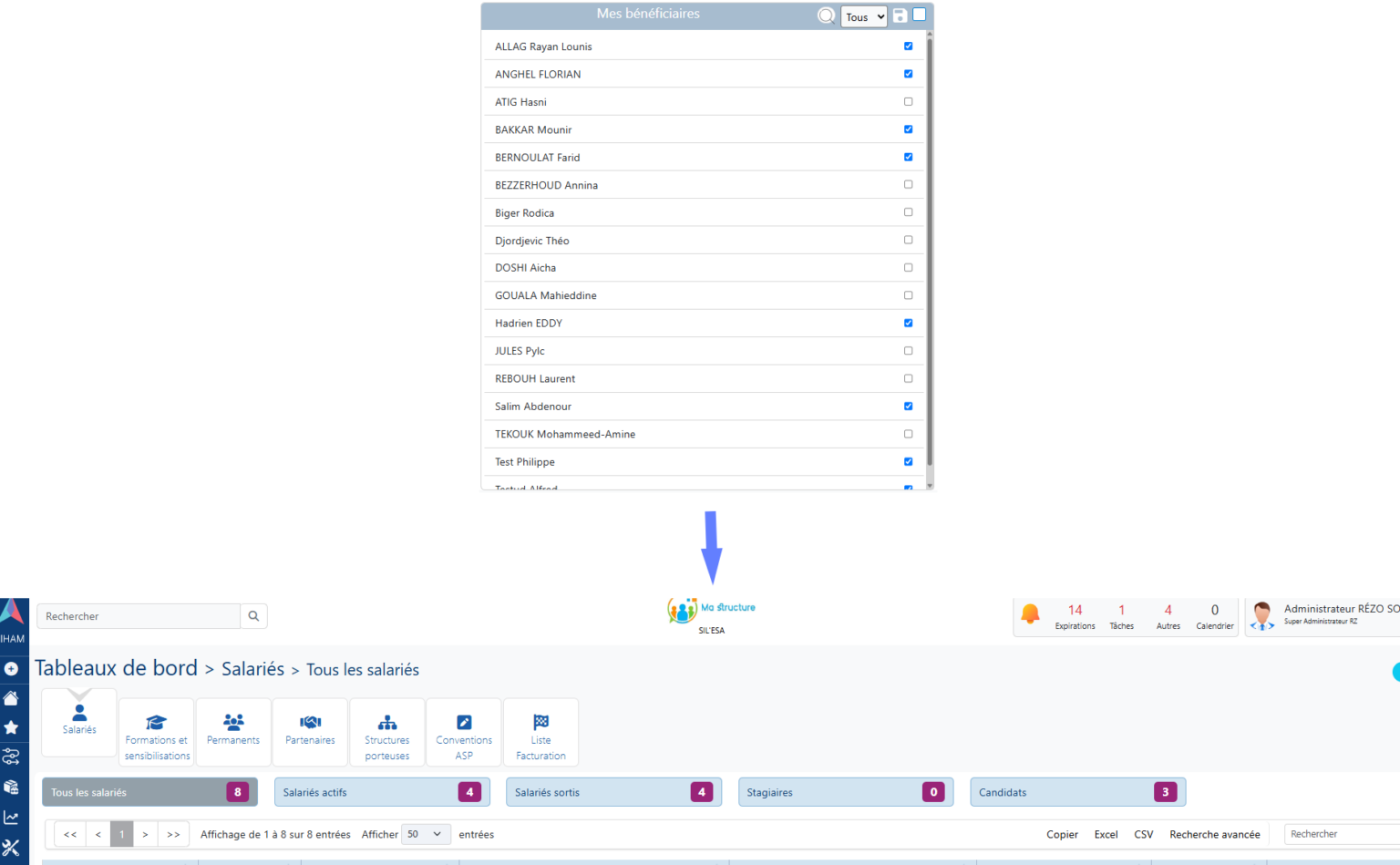 Cette option permet à l'utilisateur connecté de choisir les tuiles à afficher, et ainsi ne pas voir celles qui lui sont inutiles :
