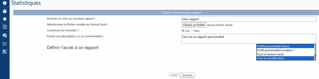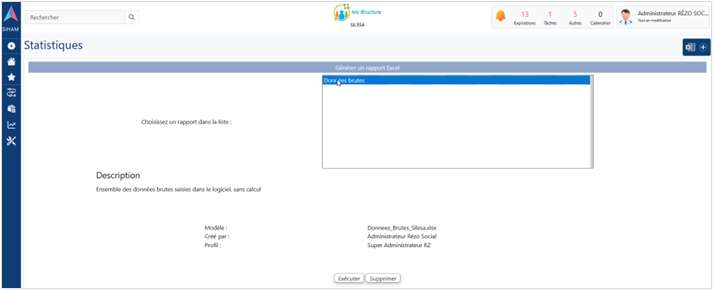 - Soit via le menu latéral, Statistiques > Rapports Excel