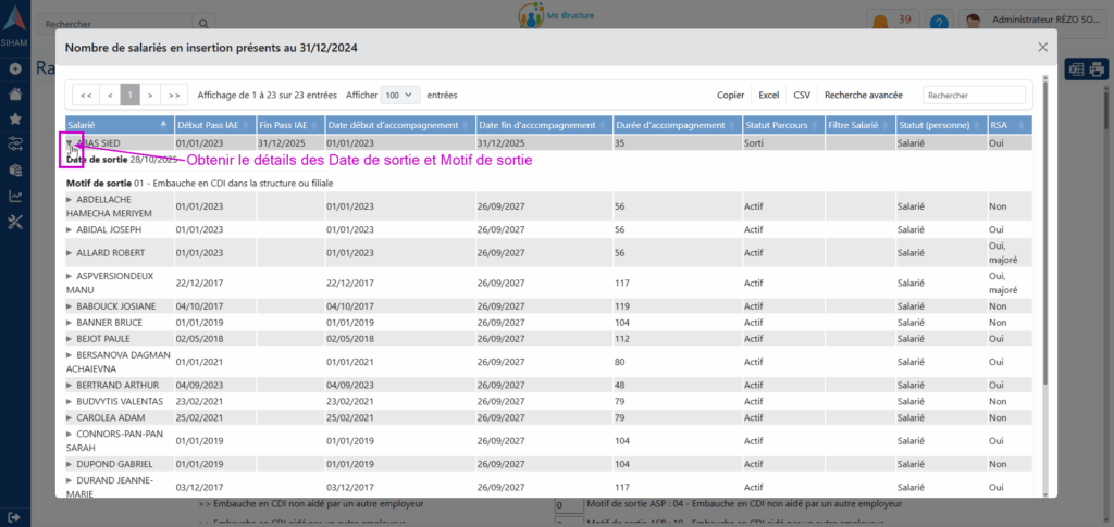 Une fenêtre s’ouvre avec le détail des salariés inclus dans le calcul.