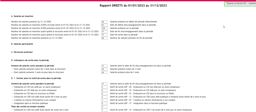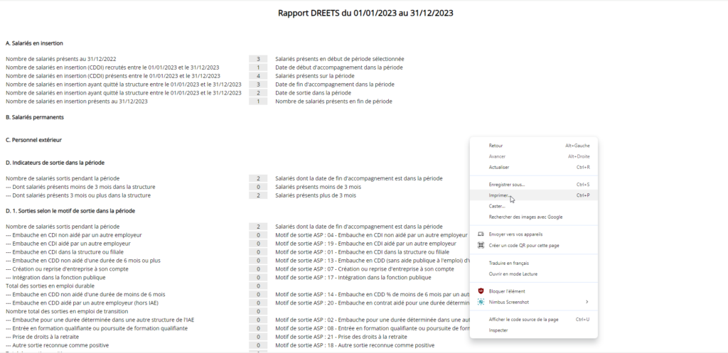 Il est possible d’exporter le rapport DREETS tel qu’il apparaît à l’écran.