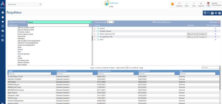 Les résultats sont affichés conformément à ce qui a tété précédemment défini (ordre des champs, tri, format des dates, champs masqués et le cas échéant conditions)