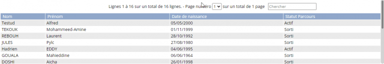 Si le tableau des résultats comprend plusieurs pages, il est possible de naviguer entre les différentes pages par la liste déroulante au-dessus qui permet d'accéder aux autres pages.