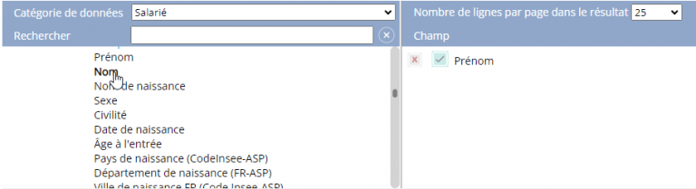 - Ajouter le champ en double cliquant sur son nom pour le faire apparaître dans la zone des champs sélectionnés